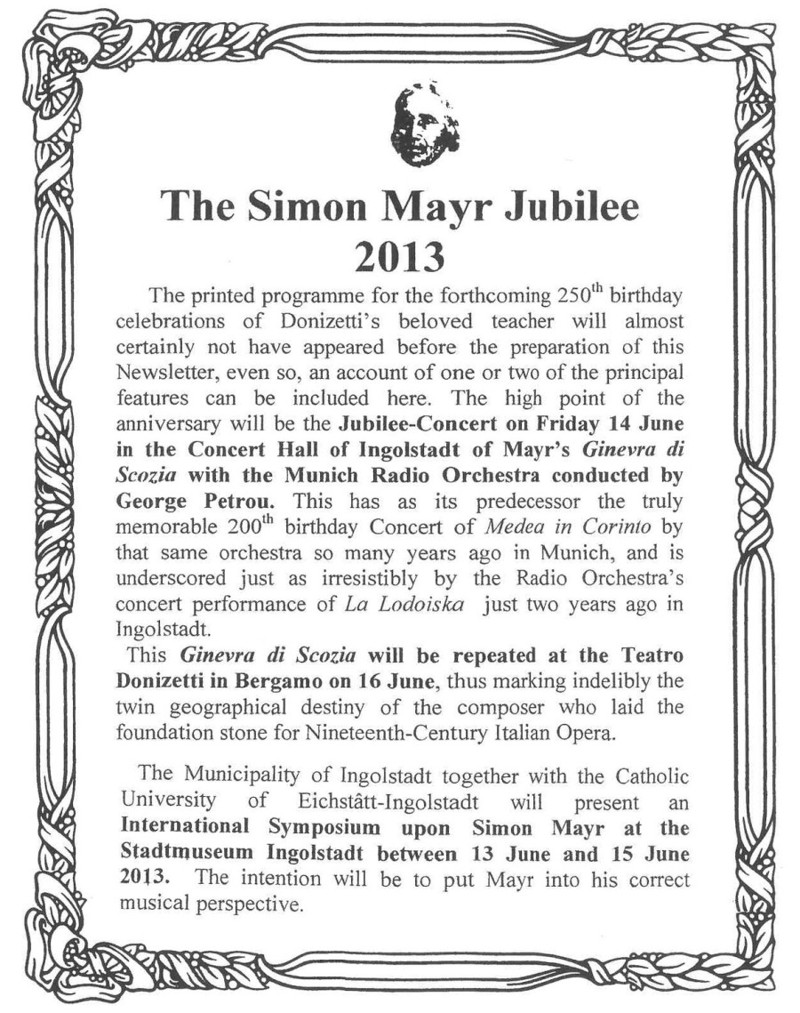aufgeführt wurde. Für Mayrs Beerdigung komponierte einer seiner Schüler, Carlo Evasio Soliva (1791–1853), das „Compianto sulla tomba die Giovanni Simone Mayr“.
