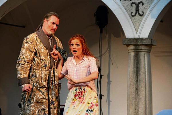 Altmannstein (DK) Geld oder Liebe? Es ist der typische Konflikt zwischen Vater und Tochter in der Commedia dell'arte, der in Johann Simon Mayrs Oper "Belle ciarle e tristi fatti" zu einem kunterbunten Verwechslungsspiel führt. Frisch und frech inszeniert mit grandioser Besetzung hat die komische Oper am Samstagabend die Besucher in Altmannstein bei ihrer deutschen Erstaufführung restlos begeistert.